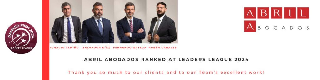 One more year, ABRIL ABOGADOS and our partners Ignacio Temiño Ceniceros, Salvador Díaz Prades, Fernando Ortega, and Rubén Rubén Canales Quinto in the 2024 edition of the Leaders League ranking