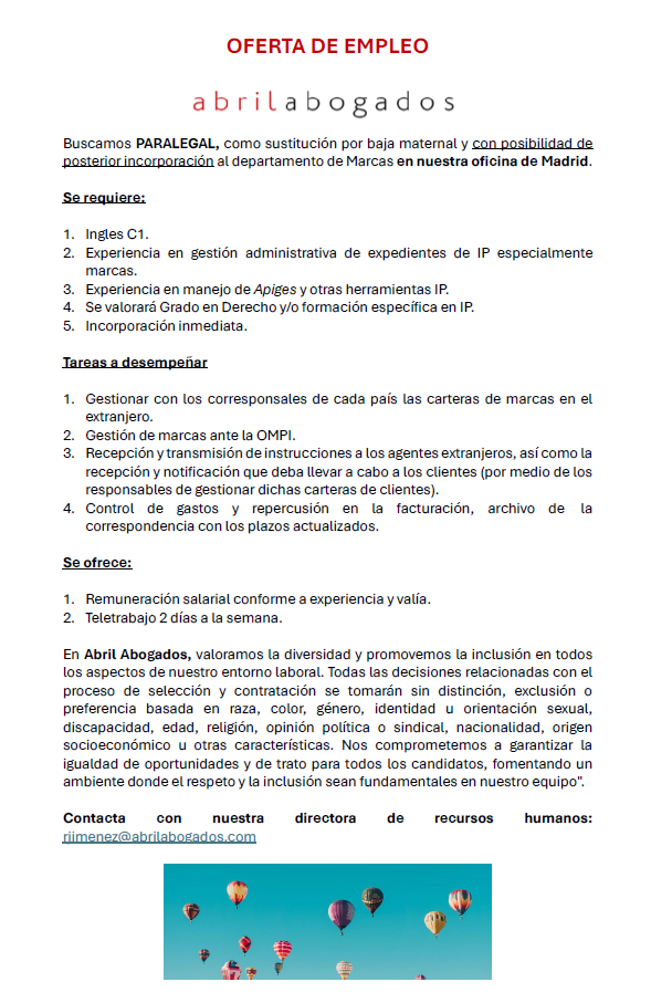 Noticias Abril Abogados » Buscamos PARALEGAL para nuestra oficina de Madrid